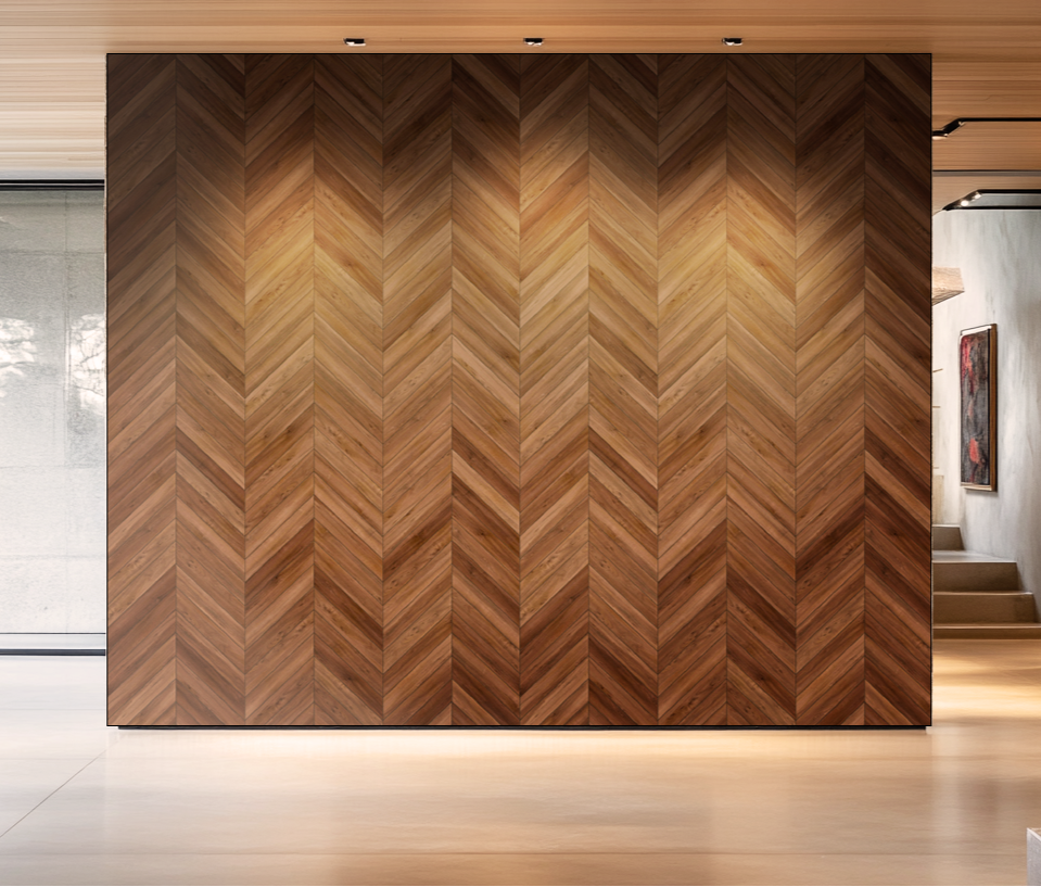 חיפויי קיר מעץ טבעי מבית Artigiano יוצרים אווירה חמימה ואותנטית, שמשתלבת באופן מושלם בכל חלל.